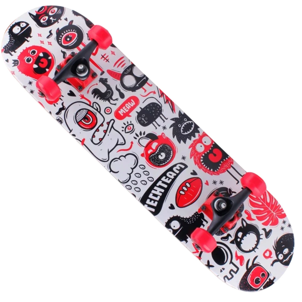 ДЕРЕВЯННЫЙ СКЕЙТБОРД TECH TEAM X-GAME Комикс – стильная модель по приемлемой стоимости стала настоящим подарком для детей и взрослых. При небольшой массе грузоподъёмность скейта составляет 85 кг. Эстетически привлекательная доска рассчитана для время провождения в черте города и парковой местности. Купить скейтборд выгодно и остаться довольными приобретением предлагает наш интернет-магазин.