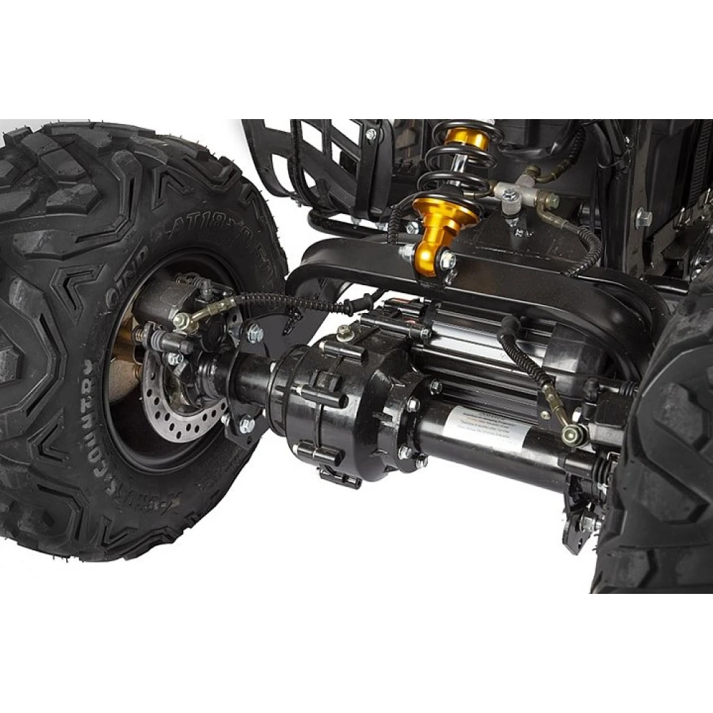 При мощности двигателя 1500 Вт максимальная скорость составляет 40-45 км/час. В сочетании с емкой АКБ электроквадроцикл способен преодолеть расстояние до 35 км.