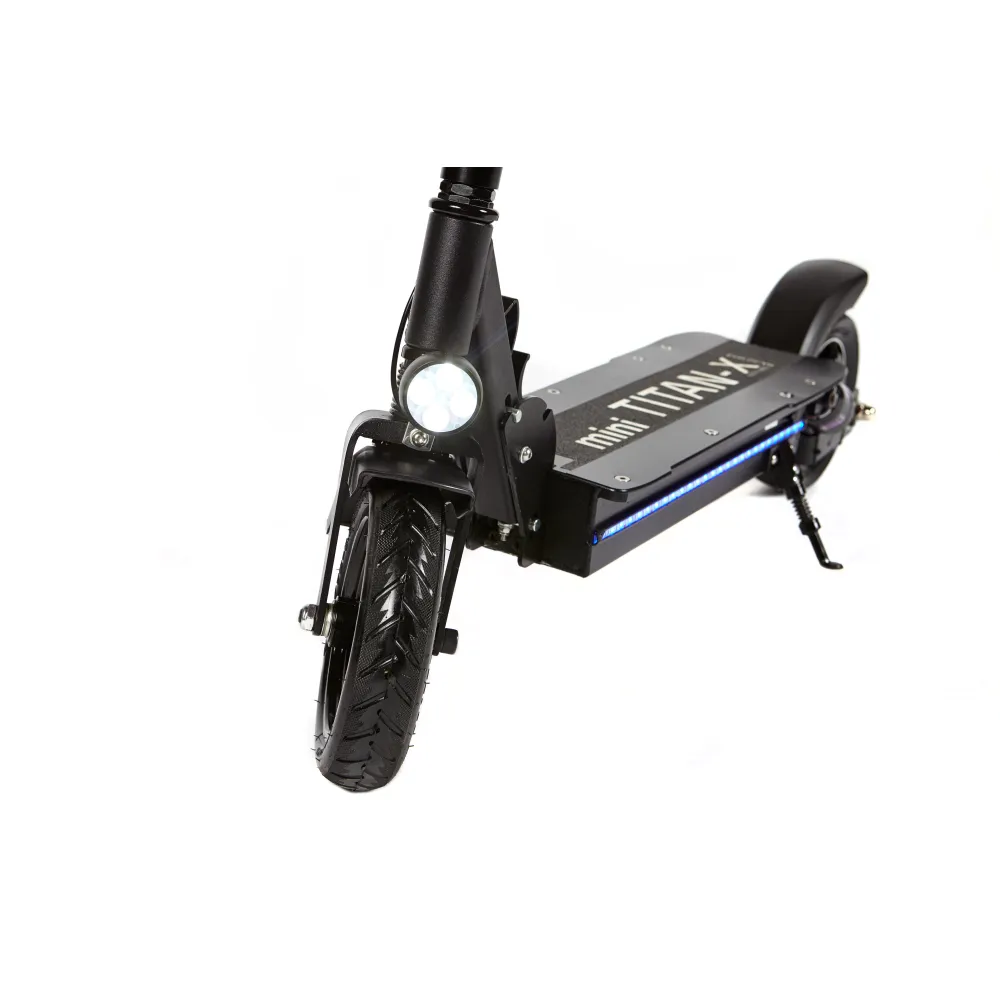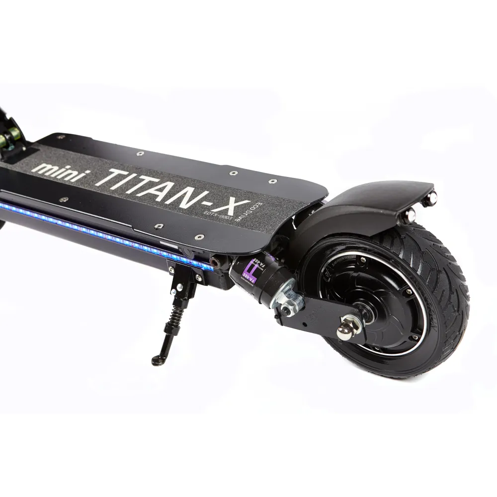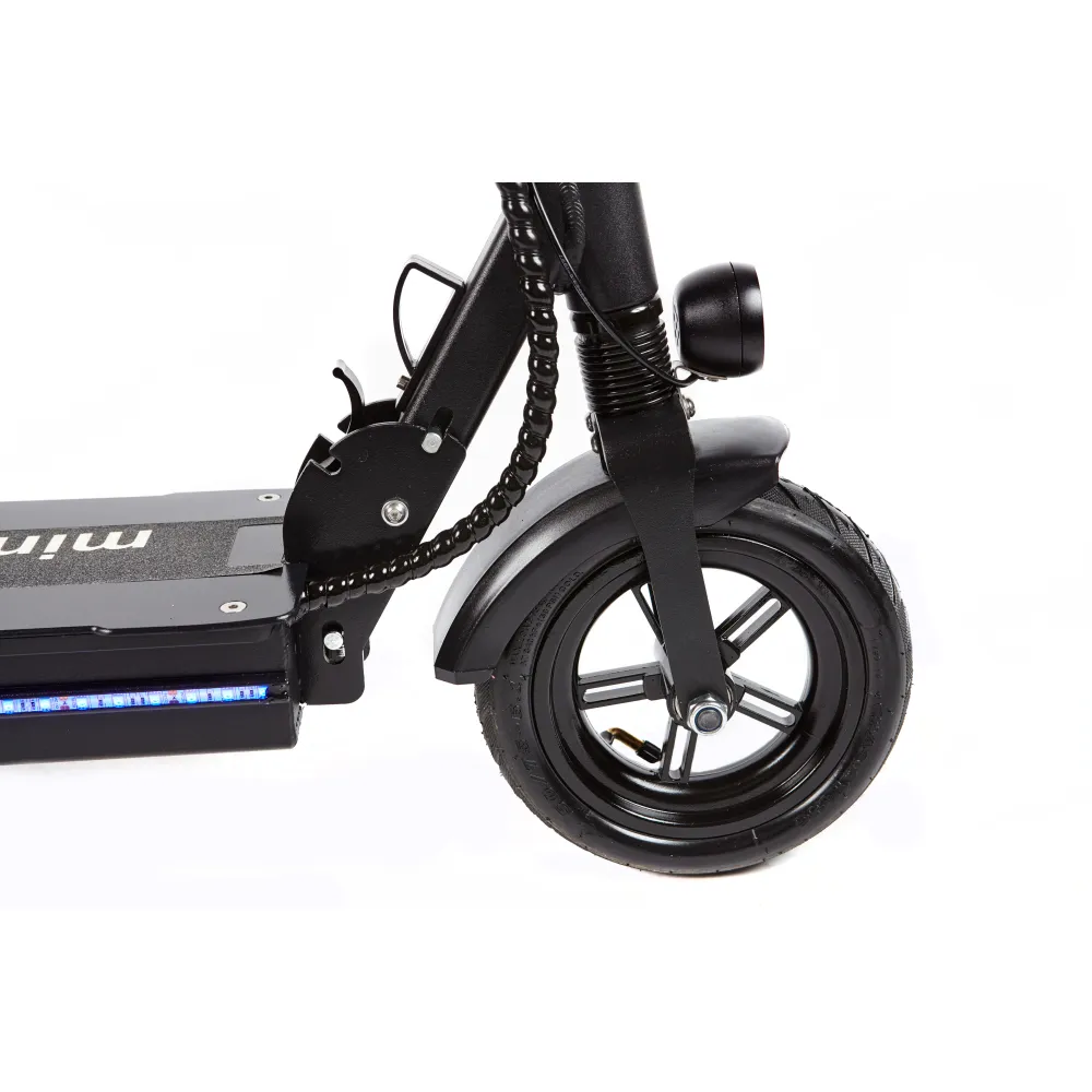 Самокат Eco Drive Mini оснащен колесами 8 дюймов, для контроля над дорожной ситуацией есть барабанные тормоза. Агрегат заводится от ключа, есть внешнее освещение, состоящее из передней фары и светодиодных полосок по боковым сторонам деки. В темное время передвигаться будет безопасно.