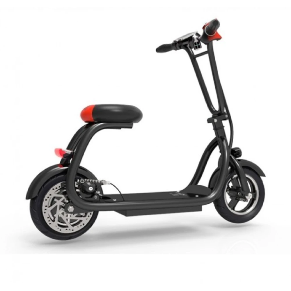Из особенностей модели производитель предлагает обратить внимание на небольшой вес, обусловленный облегченной алюминиевой рамой. Общий вес техники составляет 17,5 кг, максимальная грузоподъемность – 110 кг. Мотор-колесо имеет мощность 450 Вт, в связи с чем максимально возможная скорость составляет 45 км/час. Удобная дека, брутальные надувные колеса, комфортное седло подарят массу впечатлений, позволят насладиться ездой и экстримом.