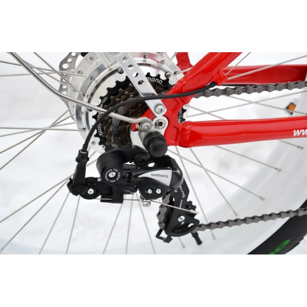 Фэтбайк Ferrari привлекает внимание своим ярким и солидным внешним видом. Его отличные характеристики удовлетворили потребности самых взыскательных пользователей. Он один из линейки внедорожных электровелосипедов, позволяющих пользоваться этим видом транспорта в любое время года. За счет своих широких колес с внедорожным протектором велобайк может покорять любое бездорожье, ездить по снегу и песку.