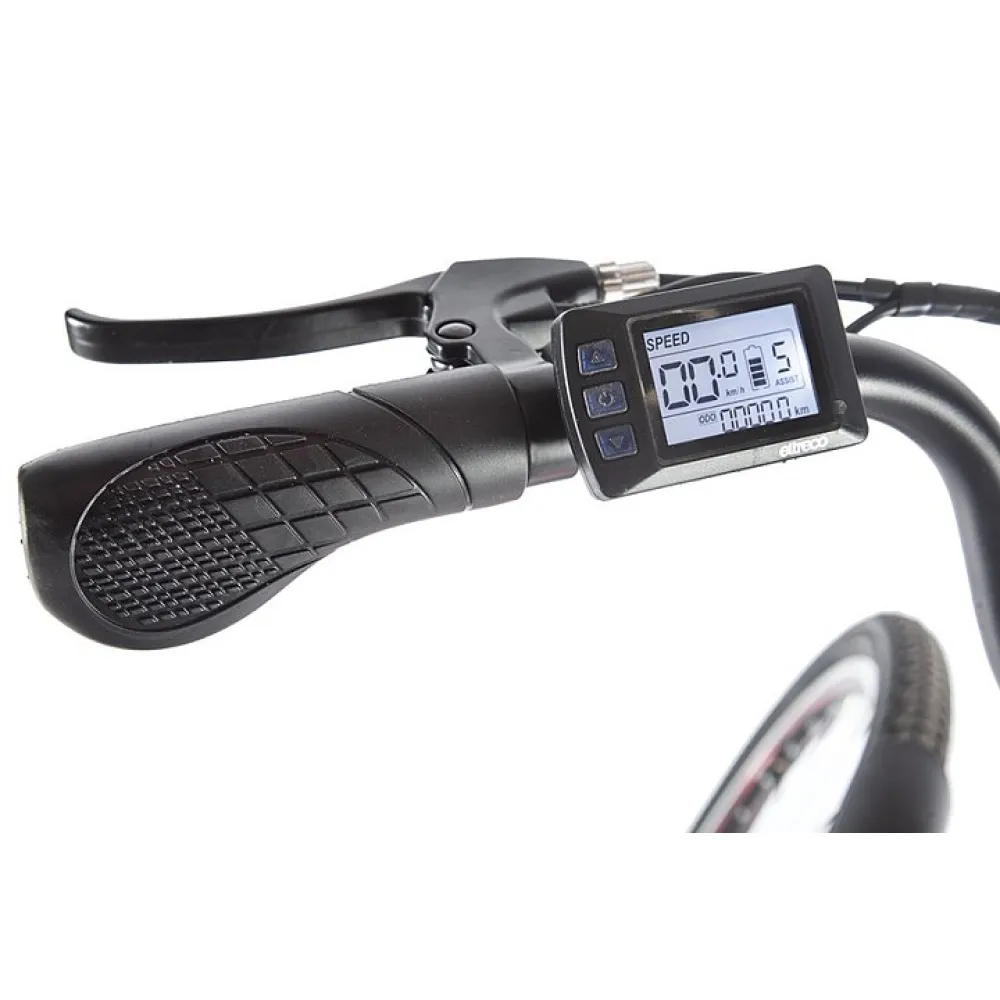 Рулевая часть велогибрида оснащена LCD-велокомпьютером Eltreco M3, благодаря которому удобно отслеживать скоростные характеристики, заряд АКБ и другие параметры.